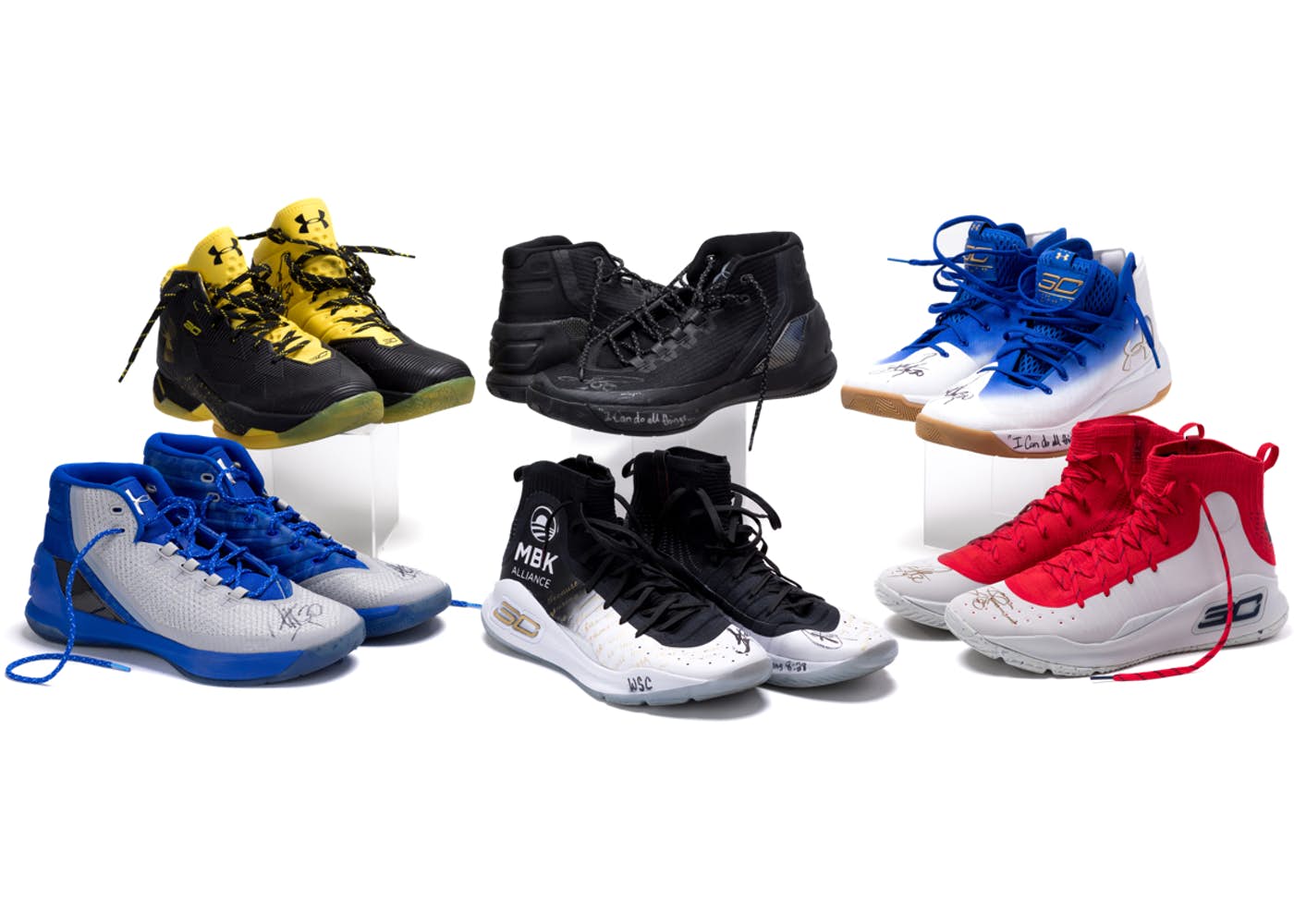 A $10 donation is required for willing participants with six sneakers up for grabs. The selection includes the Under Armour Curry 4 “My Brother’s Keeper,” Curry 4 (Red/Grey), Curry 3Zero (White/Blue/Gold), Curry 3 (Grey/Blue), Curry 3 (Black/Black) and Curry 2.5 (Black/Yellow).